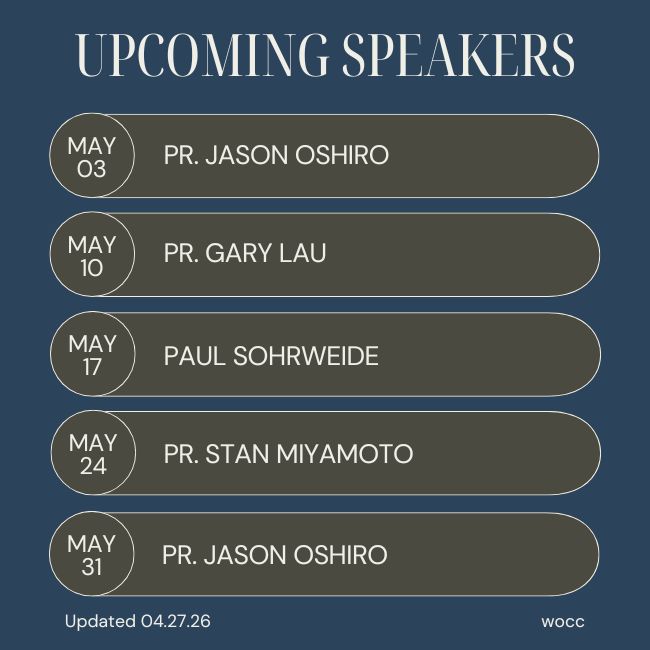 Please join us for service at 10:45am, guest speaker Craig Inouye will be speaking on: "Preparing For Eternity" Jeremiah 1:1-10